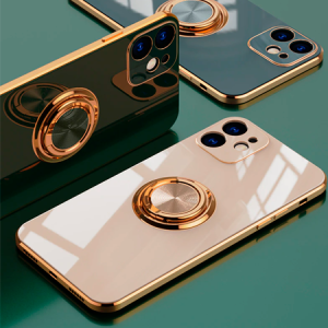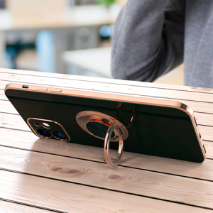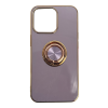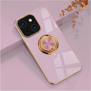 Smart fashion case for iPhone 13 Pro in pink with elegant edges and smart ring holder that ensures a better grip on the phone and can stand it up lengthwise.