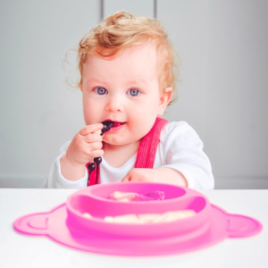 The Nuby Muncheez Food Cup is the perfect solution for mealtimes with children. This cup is made of soft silicone that is hygienic and easy to clean. It is made with Nuby's SureGrip technology which makes it non-slip so your child can get more out of mealtime instead of the food ending up on the floor or on the toilet. It is recommended to clean the table before placing the food on the plate and pushing it down. The plate itself has two compartments so the food can be easily separated and can be put in the oven, microwave and dishwasher. It has a super cute monkey design in pink.